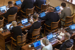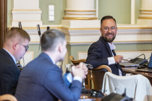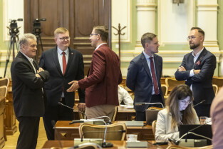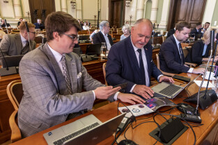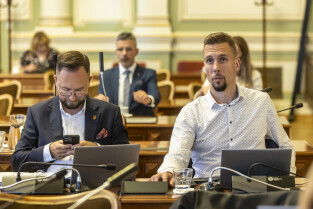 Gdańsk. V Sesja Rady Miasta. Nz. Marcin Mickun, Michał Hajduk i Krystian Kłos