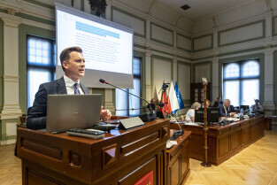 Gdańsk. V Sesja Rady Miasta. Nz. Piotr Grzelak, Z-ca Prezydenta ds. zrównoważonego rozwoju i gospodarki