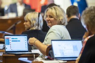 Gdańsk. V Sesja Rady Miasta. Nz. Jolanta Banach