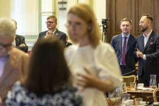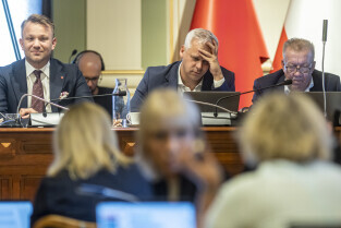 Gdańsk. V Sesja Rady Miasta. Nz. Radni Bogdan Oleszek, Marcin Mickun, Cezary Śpiewak-Dowbór, Michał Hajduk i Krystian Kłos