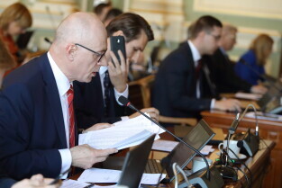 Gdańsk. VIII Sesja Rady Miasta Gdańska. Nz. Radny Cezary Śpiewak-Dowbór.