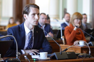 Gdańsk. VIII Sesja Rady Miasta Gdańska. Nz. Radny Kacper Płażyński.