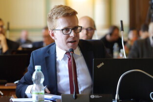 Gdańsk. VIII Sesja Rady Miasta Gdańska. Nz. Radny Łukasz Bejm.