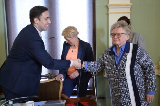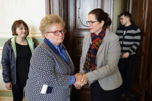 Gdańsk. VIII Sesja Rady Miasta Gdańska. Nz. Radna Teresa Wasilewska i Prezydent Gdańska Aleksandra Dulkiewicz.