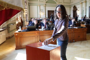 Gdańsk. VIII Sesja Rady Miasta Gdańska. Nz. Radna Teresa Wasilewska.