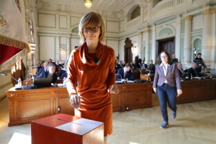 Gdańsk. VIII Sesja Rady Miasta Gdańska. Nz. Radna Beata Dunajewska.