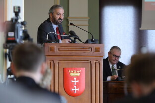 Gdańsk. VIII Sesja Rady Miasta Gdańska. Nz. Roland Budnik, dyrektor Gdańskiego Urzędu Pracy.