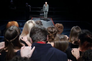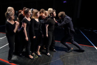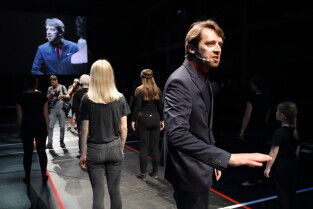 Gdańsk. Próba medialna Wałęsa w Kolonos. Nz. Reżyser Bartosz Szydłowski.