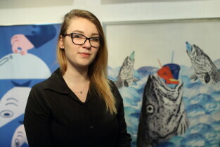Gdańsk, Plama-Gdański Archipelag Kultury. Wernisaż wystawy pt. "Plastik niefantastik". Nz. Natalia Uryniuk ASP.