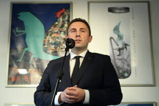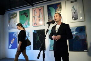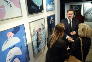 Gdańsk, Plama-Gdański Archipelag Kultury. Wernisaż wystawy pt. "Plastik niefantastik". Nz. Wiceprezydent Gdańska Piotr Borawski.