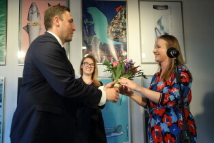 Gdańsk, Plama-Gdański Archipelag Kultury. Wernisaż wystawy pt. "Plastik niefantastik". Nz. Natalia Uryniuk ASP i Wiceprezydent Gdańska Piotr Borawski.