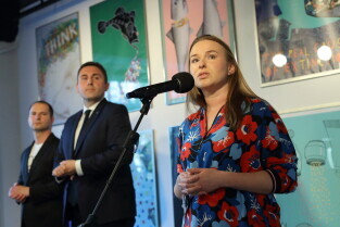 Gdańsk, Plama-Gdański Archipelag Kultury. Wernisaż wystawy pt. "Plastik niefantastik". Nz. Przewodnicząca Rady Miasta Gdańska Agnieszka Owczarczak.