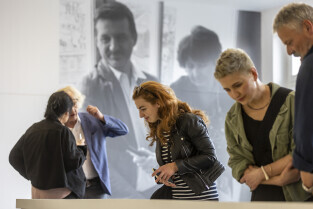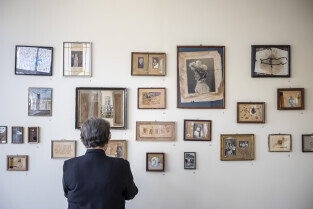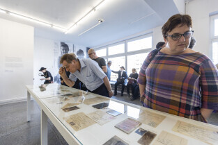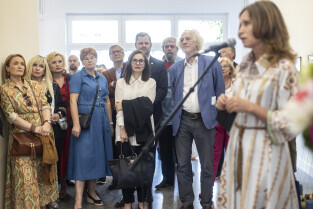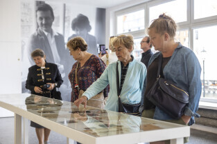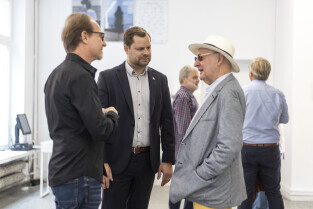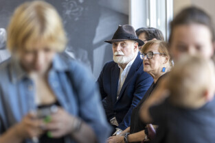 Gdańsk. W Gdańskiej Galerii Miejskiej odbył się wernisaż wystawy Małgorzaty Żerwe pt.:"Wątki". Nz. Pisarz Stefan Chwin