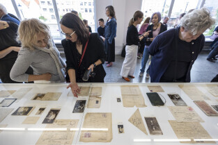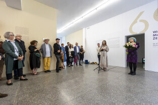 Gdańsk. W Gdańskiej Galerii Miejskiej odbył się wernisaż wystawy Małgorzaty Żerwe pt.:"Wątki". Nz. W trakcie imprezy wręczono nagrodę artystyczną Marszałka Województwa oraz Prezydenta Miasta