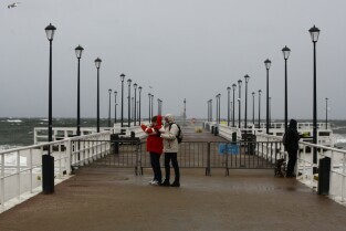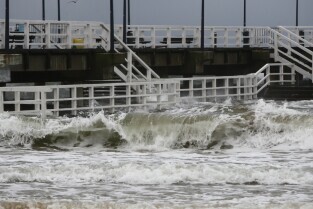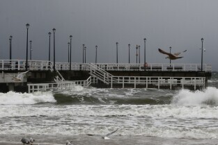 Gdańsk. Wichura w Brzeźnie. Nz. Wyłączone z użytkowania molo w Brzeźnie.