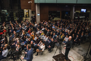 Gdańsk. Wieczór dla Przyjaciela w ECS - wieczór wspomnień o Pawle Adamowiczu. Nz. Jacek Karnowski - Prezydent Sopotu