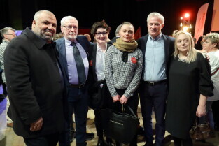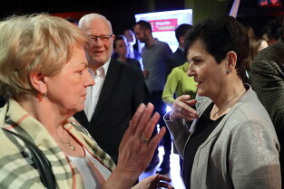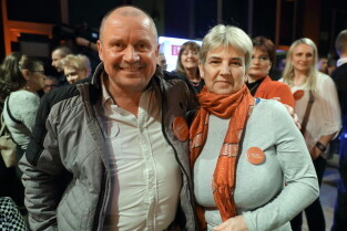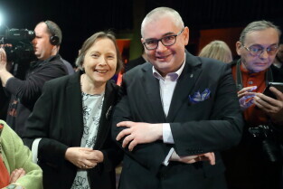 Gdańsk. Wieczór wyborczy Aleksandry Dulkiewicz. Nz. Katarzyna Hall i Piotr Kowalczuk.