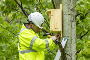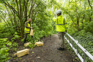 W ramach Budżetu Obywatelskiego Pracownicy firmy MKW Pracownia, Bartosz Skrzypczak i Jakub Piechowiak zamontowali ponad 50 budek lęgowych dla ptaków w pasie zieleni pomiędzy ulicami F.Liszta, Starodworską i Kartuską.