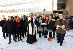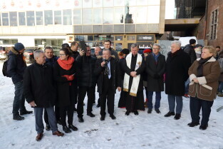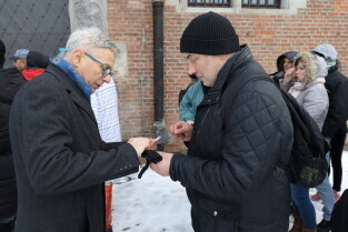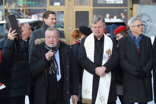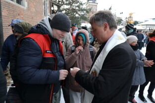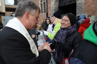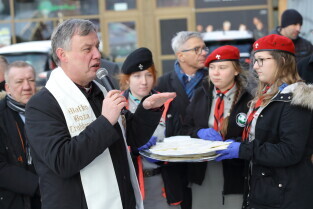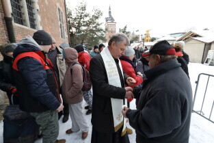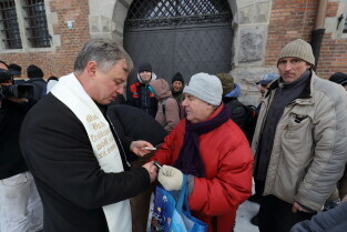 Gdańsk. "Wigilia dla potrzebujących" Polskiej Izby Gospodarczej, Restauratorów i Hotelarzy. Nz. Ks. Prałat Ireneusz Bradtke.