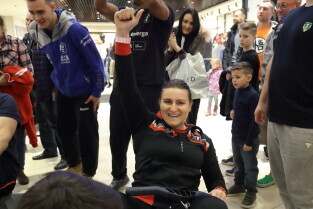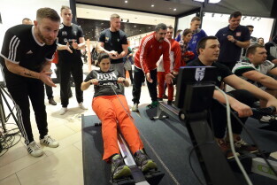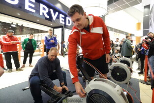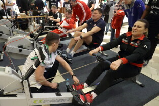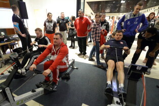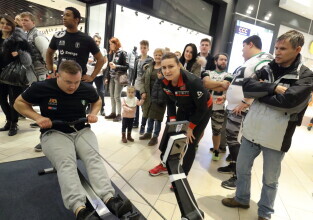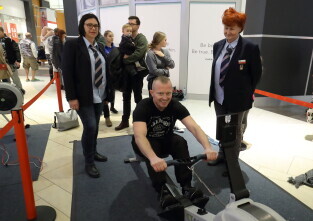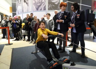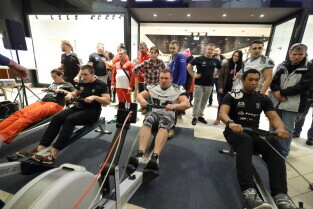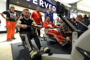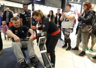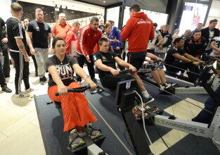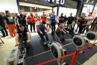 Gdańsk, Park Handlowy Matarnia. Wiosłowanie na ergometrze. Gdańsk jako jedno z 7. polskich miast, próbuję pobić rekord Polski w wiosłowaniu.