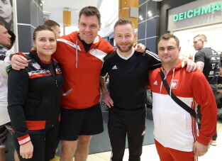 Gdańsk, Park Handlowy Matarnia. Wiosłowanie na ergometrze. Gdańsk jako jedno z 7. polskich miast, próbuję pobić rekord Polski w wiosłowaniu. Nz. Agnieszka Korol, Adam Korol, Ryszard Świlski i Leszek Blanik.