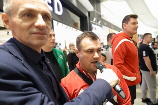 Gdańsk, Park Handlowy Matarnia. Wiosłowanie na ergometrze. Gdańsk jako jedno z 7. polskich miast, próbuję pobić rekord Polski w wiosłowaniu. Nz. Leszek Blanik, Adam Korol i Agnieszka Korol.