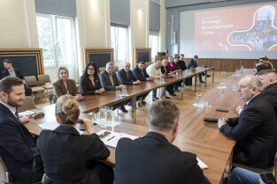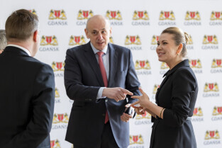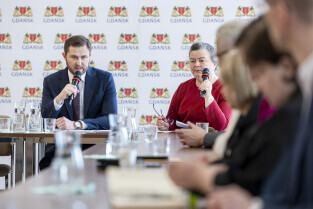 Gdańsk. Wizyta delegacji Mołdawii w Urzędzie Miejskim. Gości pod przewodnictwem Violety Agrici, Ambasador Republiki Mołdawii w Polsce w Polsce, powitał Piotr Grzelak, zastępca prezydent Gdańska ds. zrównoważonego rozwoju i gospodarki.