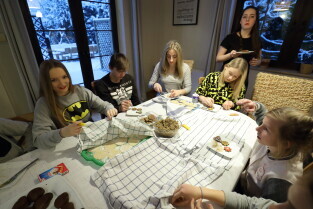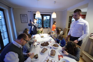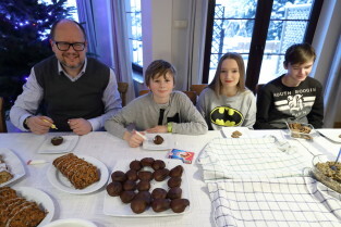 Gdańsk. „Dom pod Irysami” Prezydent Gdańska Paweł Adamowicz przygotowywał wraz z dziećmi potrawy świąteczne i wręczył upominki.