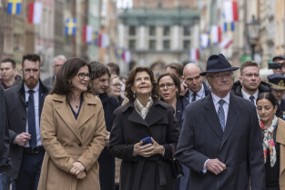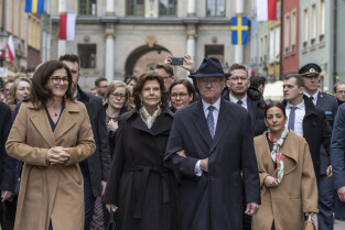 Wizyta szwedzkiej Pary Królewskiej W Gdańsku. Dostojni goście złożyli kwiaty pod Pomnikiem Poległych Stoczniowców, zwiedzili Europejskie Centrum Solidarności, w którym spotkali się z Lechem Wałęsą. Następnie wraz z Prezydent Aleksandrą Dulkiewicz udali się na spacer po Głównym Mieście.