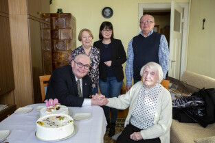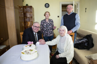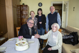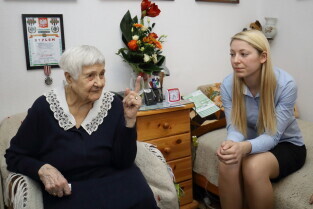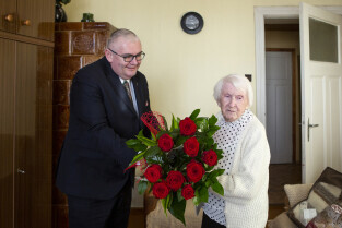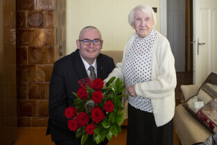 Gdańsk Przeróbka. Z-ca Prezydenta Gdańska Piotr Kowalczuk z wizytą u 100-latki pani Jadwigi Sopali