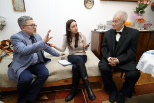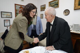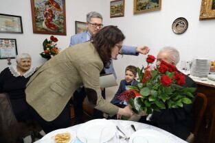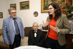 Gdańsk. Prezydent Gdańska Aleksandra Dulkiewicz odwiedziła 100-latka Georgisa Dafererasa.