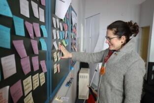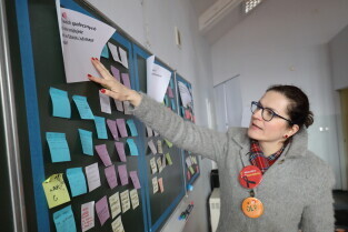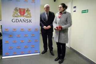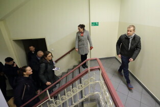 Gdańsk. Aleksandra Dulkiewicz, pełniąca funkcję prezydenta Miasta Gdańska oraz pracownicy Wydziału Rozwoju Społecznego Urzędu Miejskiego w Gdańsku oglądali powstające Centrum Obywatelskie przy ul. Dolna Brama.