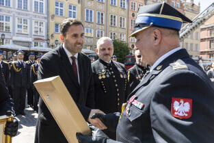 Na Długim Targu odbył się uroczysty apel z okazji Wojewódzkich Obchodów Dnia Strażaka. W uroczystościach udział wzięli Wojewoda Pomorska Beata Rutkiewicz, Wicemarszałek woj. pomorskiego Leszek Bonna oraz Piotr Borawski, Z-ca Prezydenta ds. mobilności i bezpieczeństwa