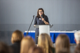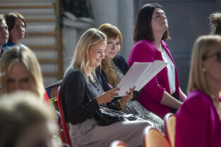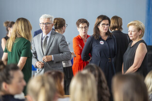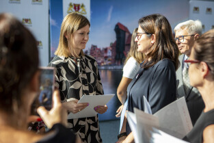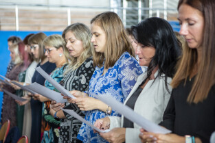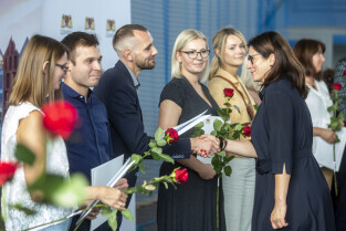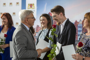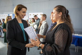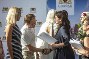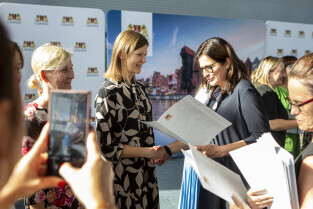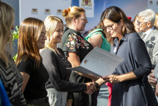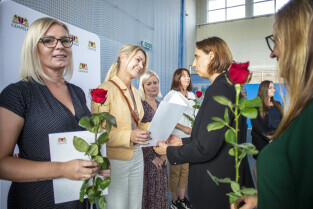 Prezydent Aleksandra Dulkiewicz, jej zastępczyni Monika Chabior, Przewodnicząca Rady Miasta Agnieszka Owczarczak, radny Andrzej Kowalczys i Grzegorz Kryger Dyrektor Wydziału Edukacji wzięli udział w uroczystym wręczeniu aktów nadania stopnia nauczyciela mianowanego, które odbyło się w Zespole Szkół Ogólnokształcących nr 7.