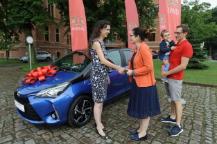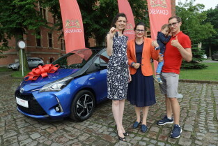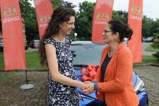 Gdańsk. Wręczenie nagrody w Loterii Pit w Gdańsku. Kluczyki z rąk Prezydent Gdańska Aleksandry Dulkiewicz otrzymała Iwona Kołodziejska.