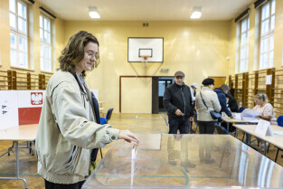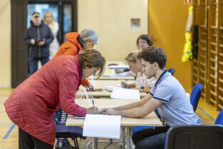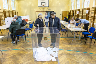 Gdańsk. Obwodowa Komisja Wyborcza Nr 80 na terenie IX LO w dzielnicy Strzyża, trwa głosowanie w wyborach do Rad Dzielnic.