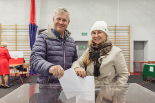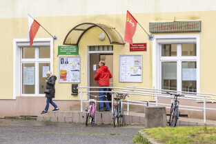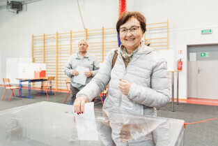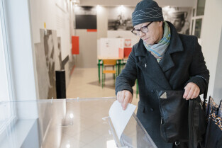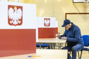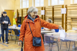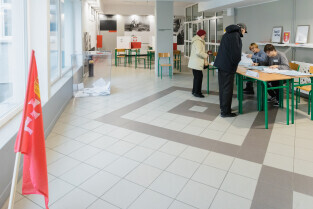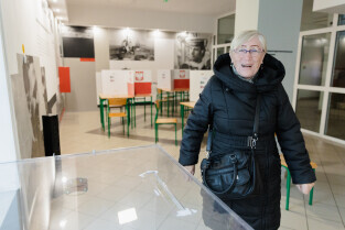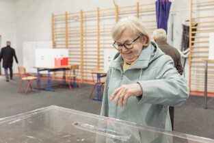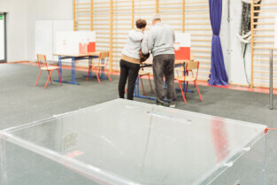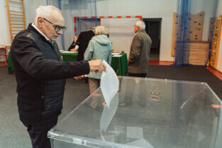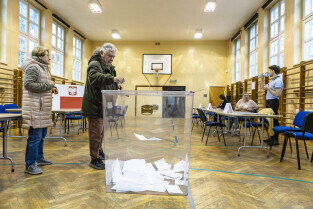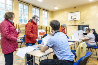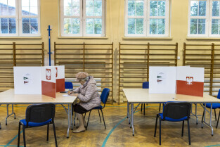 Gdańsk. Obwodowa Komisja Wyborcza Nr 81 w dzielnicy Strzyża, trwa głosowanie w wyborach do Rad Dzielnic.