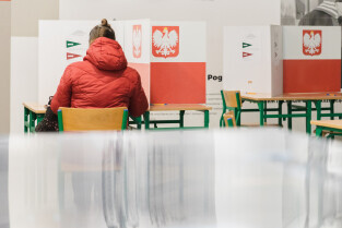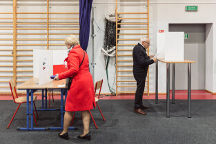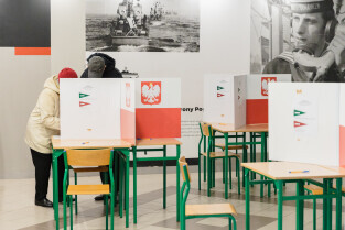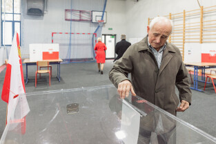 Gdańsk. Obwodowa Komisja Wyborcza Nr 5 na terenie IV LO w dzielnicy Nowy Port, trwa głosowanie w wyborach do Rad Dzielnic.