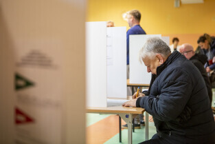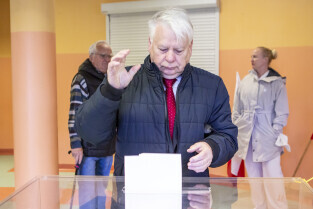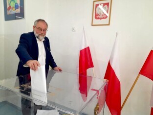 Gdańsk. Wybory parlamentarne 2023. Mieszkańcy Gdańska ruszyli do urn. Nz. Swój głos oddaje kandydat na posła Piotr Adamowicz.