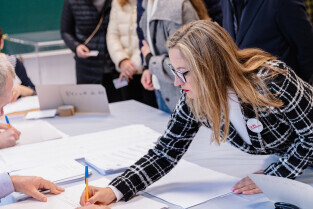 Gdańsk. Wybory parlamentarne 2023. Mieszkańcy Gdańska ruszyli do urn. Nz. Obwodowa Komisja Wyborcza nr 27