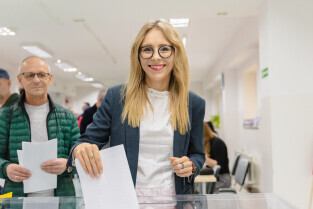 Gdańsk. Wybory parlamentarne 2023. Mieszkańcy Gdańska ruszyli do urn. Nz. Agnieszka Pomaska