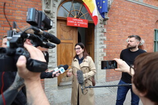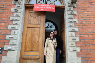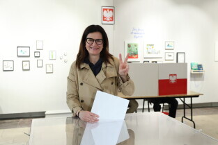 Gdańsk. Wybory Samorządowe, Aleksandra Dulkiewicz głosuje w Obwodowej Komisji Wyborczej nr. 31.