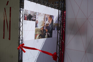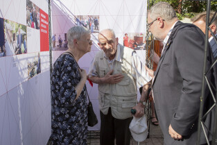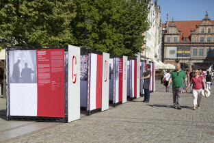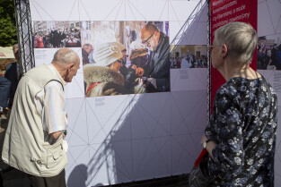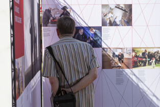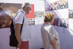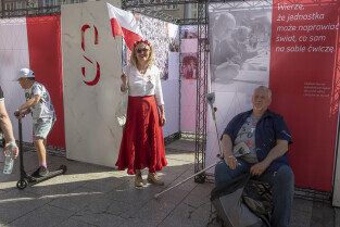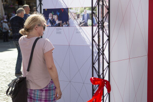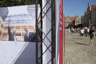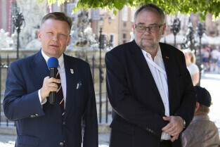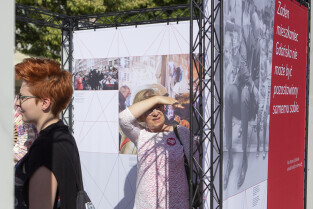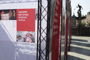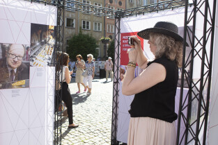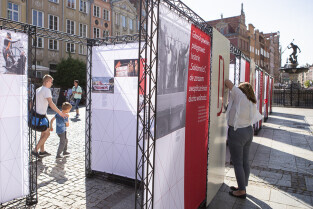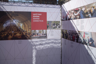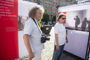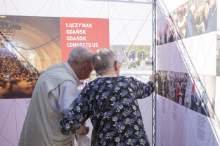 Gdańsk Długi Targ. Wystawa fotograficzna: Budowanie wspólnoty, Paweł Adamowicz i Gdańszczanie