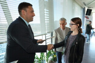 Gdańsk. XVII Edycja Gali Finałowej Wakacyjny Staż. Nz. Magdalena Kreft-Kierownik Referatu Przedsiębiorczości i Turystyki w Wydziale Polityki Gospodarczej i Wiceprezydent Gdańska Piotr Borawski.