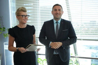 Gdańsk. XVII Edycja Gali Finałowej Wakacyjny Staż. Nz. Małgorzata Gwóźdź-Dyrektor ds. personalnych w Olivia Business Centre i Wiceprezydent Gdańska Piotr Borawski.