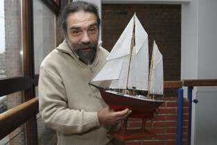 Podpisanie umowy zakupu przez Miasto Gdańsk żaglowca y/s Generał Zaruski od Ligii Obrony Kraju. Nz. Jan Trammer, kapitan rewitalizowanego żaglowca