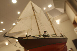 Podpisanie umowy zakupu przez Miasto Gdańsk żaglowca y/s Generał Zaruski od Ligii Obrony Kraju. Nz. z modelem żaglowca: Skarbnik Gdańska Andrzej Bojanowski, Prezydent Gdańska Paweł Adamowicz i Prezes LOK Grzegorz Jarząbek