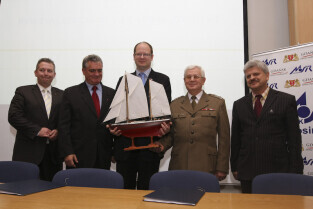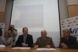 Podpisanie umowy zakupu przez Miasto Gdańsk żaglowca y/s Generał Zaruski od Ligii Obrony Kraju. Nz. od lewej: płk. Grzegorz Jarząbek (Prezes LOK), Piotr Soyka (Prezes Stoczni Remontowej S.A.), Paweł Adamowicz (Prezydent Gdańska), Jerzy Litwin (Dyrektor CMM), Leszek Paszkowski (Dyrektor MOSiR)