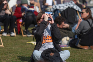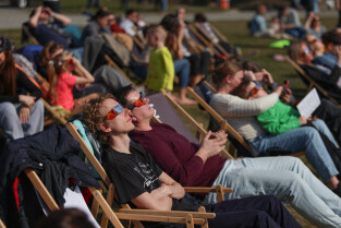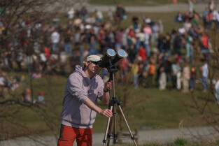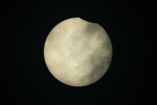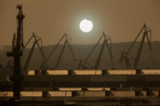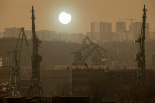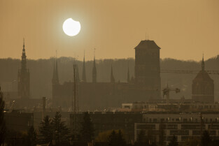 Gdańsk. Przez kilka dziesiąt minut można było obserwować częściowe zaćmienie słońca nad gdańskiem. Księżyc zasłonił naszą gwiazdę w zaledwie 13%.