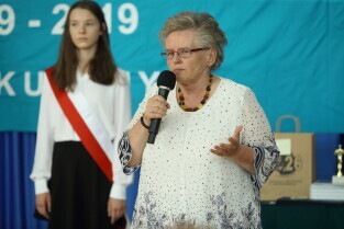 Gdańsk, Gimnazjum nr 26. Zakończenie roku szkolnego z udziałem Prezydent Gdańska Aleksandry Dulkiewicz. Nz. Wiceprzewodnicząca Rady Miasta Gdańska Teresa Wasilewska.
